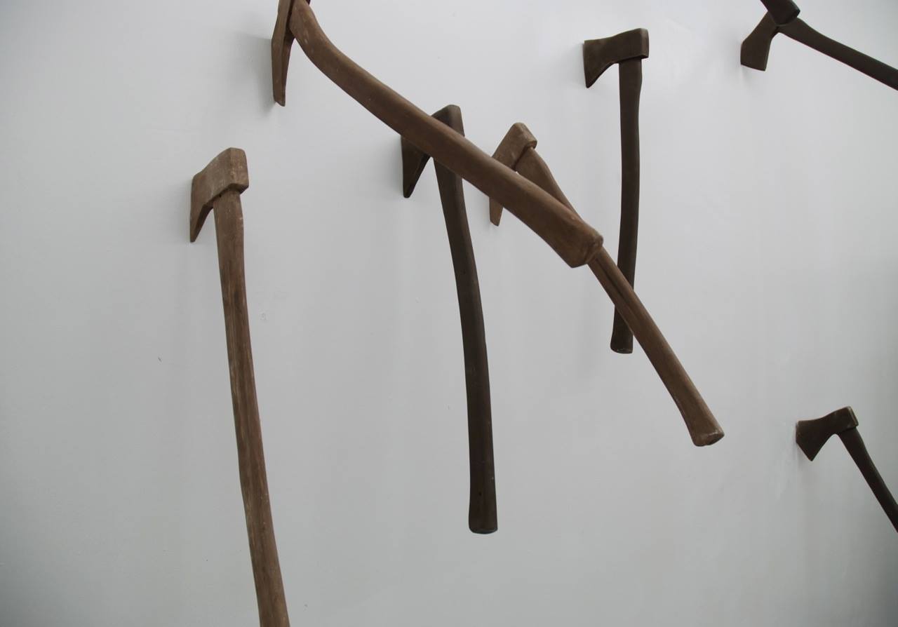 Pour Rachel Labastie le matériaux terre n’est pas réfractaire : il est un moyen adapté pour introduire une illusion entre résistance et fragilité. Une violence sourde émane de ces haches ou piolets archaïques plantés dans un mur immaculé. Acte d’initiation, d’une prise de conscience qui ressemble à une illumination. Ce geste manifeste-t-il une rébellion ? Rachel Labastie se révolte-t-elle contre les affirmations bibliques ? Son travail est proche de l’alchimie, entre force, équilibre et précarité. Il nous convie à une escalade périlleuse où chaque décision se doit d’être précise pour éviter la chute. Avec une grande économie de moyens, « loin de vouloir proposer des objets rares, [Rachel Labastie] avance différents points d’interrogation sur la notion d’unicité de l’œuvre.»